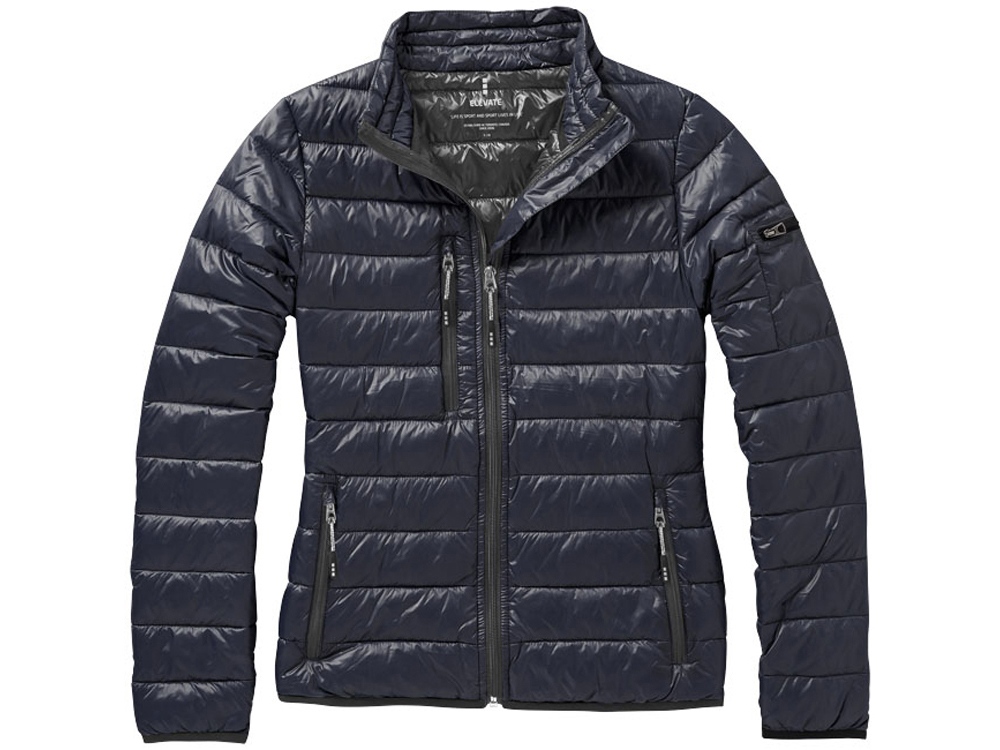 Женская легкая куртка Scotia. Стандартный покрой. Ткань не пропускает пух. Карманы для рук и нагрудный на молнии. Карман на рукаве на молнии можно использовать для нанесения. Резинка на манжетах и внизу куртки. Ремешки на собачку (второй комплект в цвете антрацит). Внутренний противоветровой клапан и защита подбородка. Ткань дышащая, ветронепроницаемая и влагоотталкивающая. Отражающий лого сзади. Легкий пуховик. Ткань из 100% нейлона с матовым и блестящим водоотталкивающим покрытием, 20D. 80% пух и 20% перо. 115 г/м².