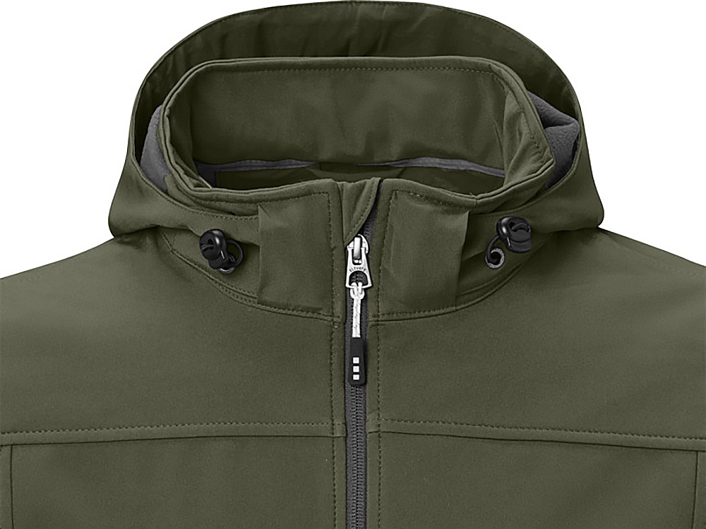 Куртка софтшел Ланглей. Стандартный покрой. Отстегивающийся капюшон на шнурках со стопперами. Обратная молния по центру и на карманах для рук. Регулируемые манжеты на липучках. Отражающий лого сзади. Водонепроницаемый 5000 мм. Дышащий 3000 мм. Ткань эластична в четырех направлениях. Ветронепроницаемая. Ремешки на пуллер (второй комплект в цвете антрацит). Ткань из 90% полиэстера и 10% эластана, склеенного со 100% полиэстеровым микрофлисом. 300 г/м².