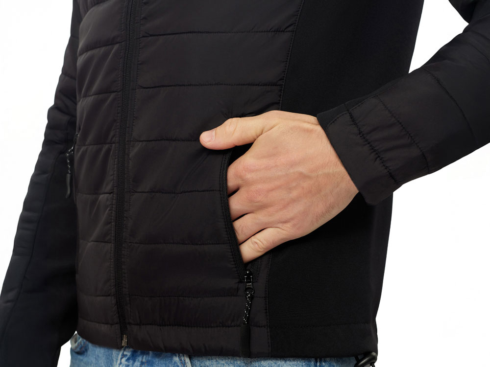 Вдохновленная динамичным миром автогонок, эта куртка сочетает в себе брутальную эстетику гонок с передовыми технологиями материалов. Идеальный выбор для промоактивностей, спортивных брендов или подарка тем, кто ценит стиль и функциональность. - гибридная конструкция из 2 видов материалов – софтшелл гарантирует ветронепроницаемость и легкость, а стеганные вставки добавляют утепления. - центральная молния в тон, верхний край продублирован ветрозащитным клапаном - боковые карманы на молниях с прорезиненными бегунками
