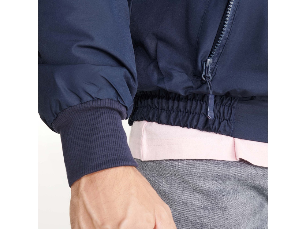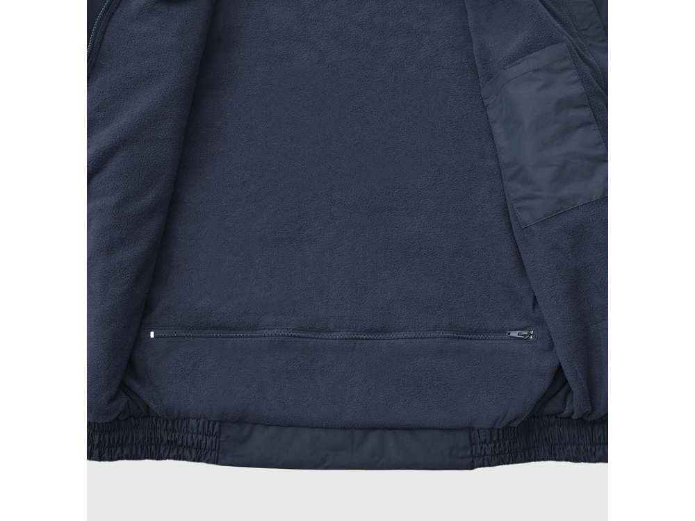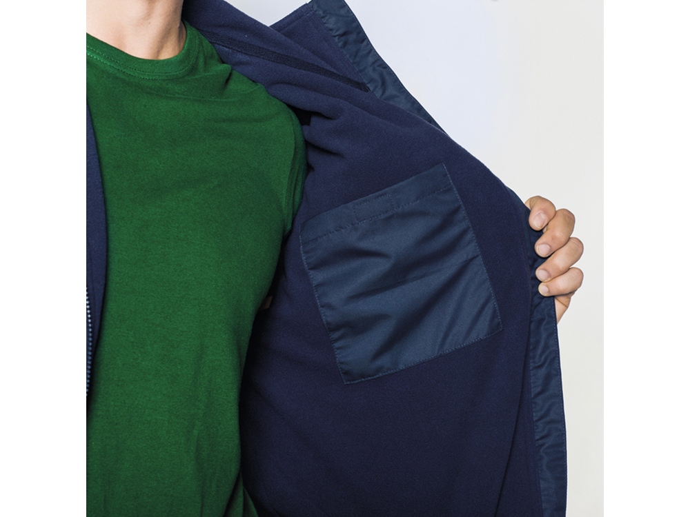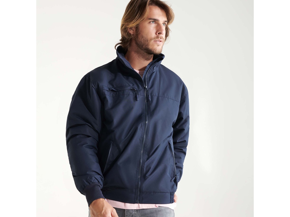 Удобная стеганая куртка из очень прочной ткани с высоким воротником. 1. Молния спереди c защитой для подбородка. 2. Три наружных карманы с клапаном и молнией. Один нагрудный карман с правой стороны и два кармана по бокам.