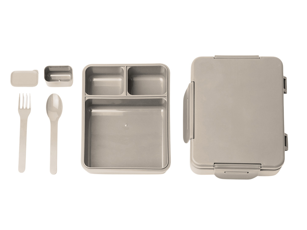 Ланч-бокс объемом 1,3 л, изготовленный из безопасного полипропилена. Продуманная конструкция позволяет удобно разделять продукты и брать обед с собой без риска протекания. Три независимых отделения разного размера — можно разделять горячее, гарнир и салат, не смешивая вкусы и запахи Съемное основное отделение — под ним есть место для хранения вилки и ложки (приборы идут в комплекте) Откидная крышка с защитой от протекания — силиконовая подкладка внутри надежно герметизирует бокс Отдельный контейнер для соуса — в комплекте есть небольшая емкость для заправок, соусов или приправ Можно разогревать в микроволновке — достаточно открыть крышку Уход: только ручная мойка (не подходит для посудомоечной машины) Упаковка: экологичная дизайнерская коробка
