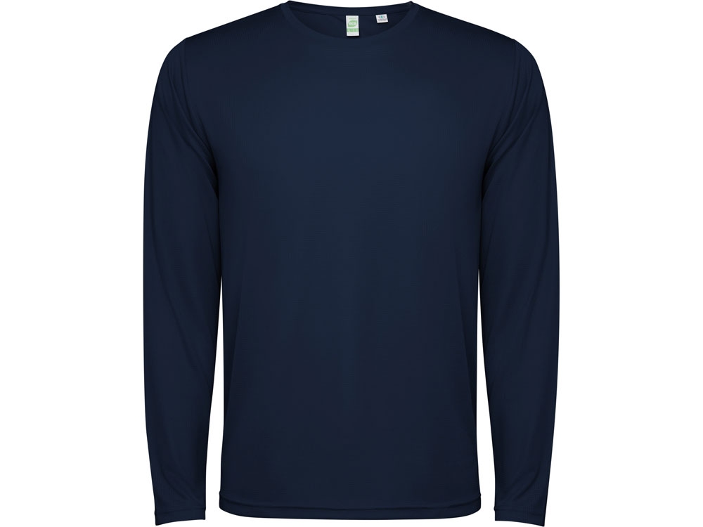 Детский лонгслив из технологичного полотна. Отстрочки в тон. Спинка с удлинением. Боковые швы со смещением вперед.