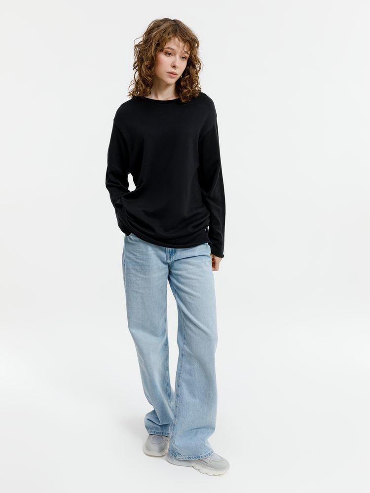 Лонгслив Fuori средней плотности с широким воротом, спущенной линией плеча и свободно подворачивающимися краями по низу, на рукавах и вороте, которые добавляют модели еще большей расслабленности. Прозрачная бирка с логотипом бренда на рукаве не нарушает минималистичности образа.