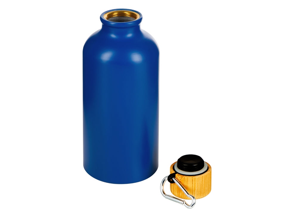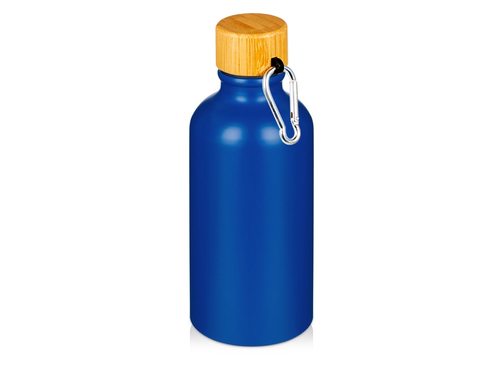 Матовая спортивная бутылка Hip S Bamboo с карабином и объемом 400 мл, синий купить оптом и в розницу с нанесением логотипа в Волгограде