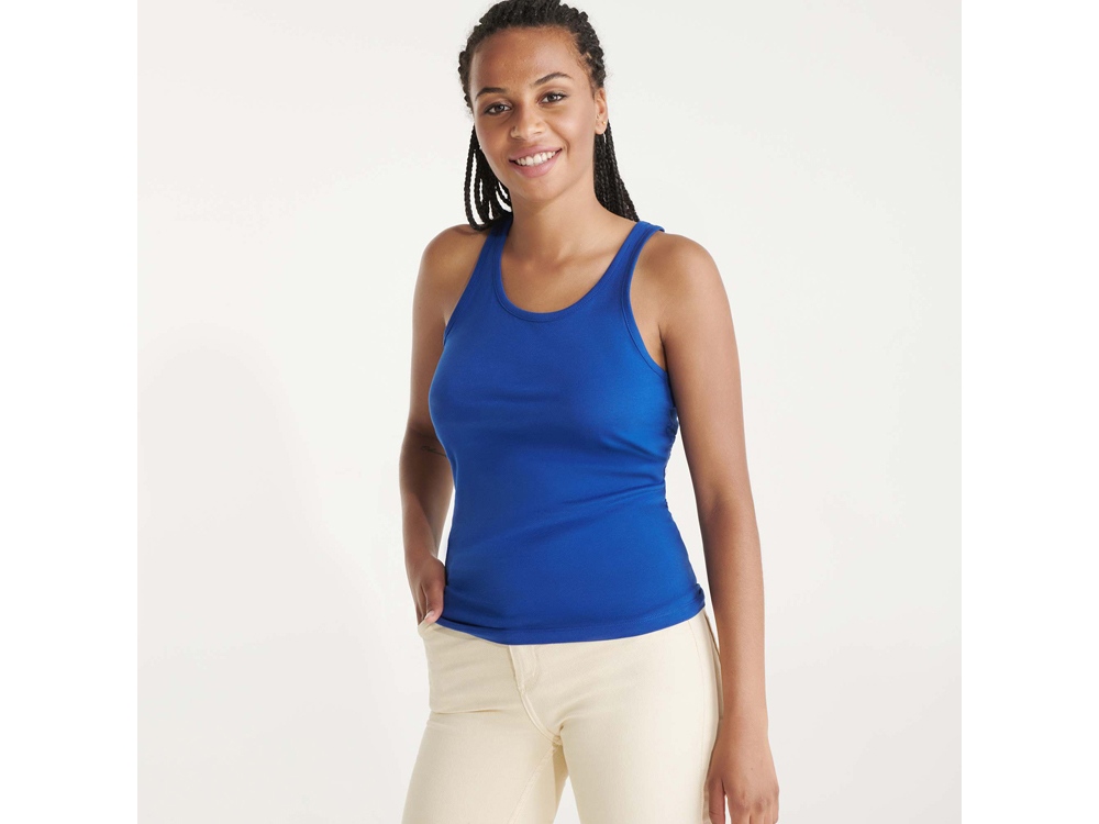 Майка узкого силуэта, горловина и проймы обработаны рибом. Спортивная спинка, боковые швы. В ассортименте также представлена аналогичная женская модель Brenda.