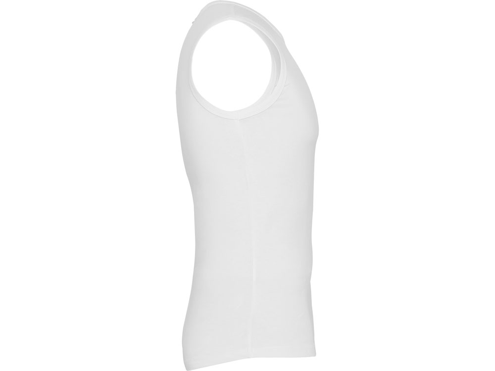 Мужская майка узкого силуэта с V-образным вырезом горловины. Отделка рибом по горловине и пройме.
