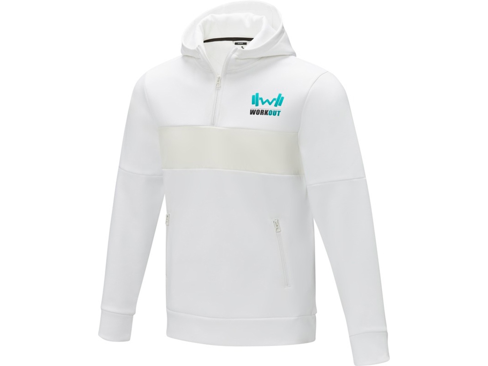 Мужской свитер анорак Sayan на молнии на половину длины с капюшоном, белый купить оптом и в розницу с нанесением логотипа в Волгограде