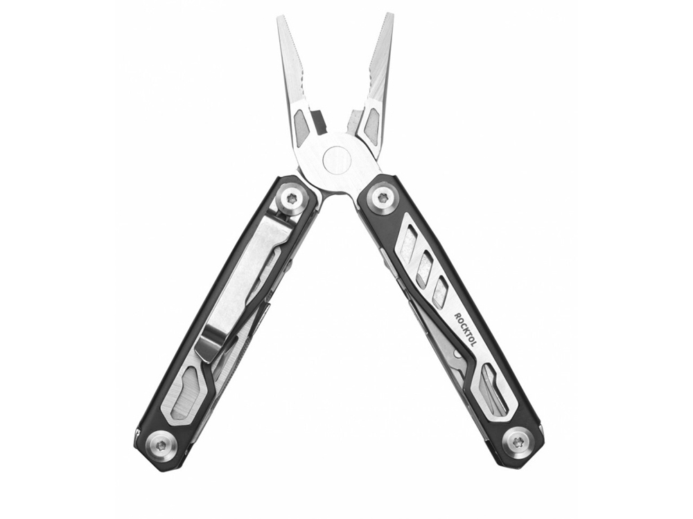 Мультифункциональный инструмент из нержавеющей стали. 16 опций: нож прямой из нержавеющей стали 3CR13 c коэффициентом твёрдости HRC57, нож серрейторный, пила, подпружиненные пассатижи, кусачки для обычной и твердой проволоки, острогубцы, плоскогубцы, напильник по дереву и металлу, стропорез, отвёртка Phillips, линейка, малая шлицевая и часовая отвертки, шило с ушком, консервный нож, открывалка для бутылок. Liner-lock. Все опции фиксируются от случайного закрытия или выпадания. 3D машинная обработка рукоятей. Покрытие частично- Black Oxide. Длина ножа 6,5 см. Длина мультитула в сложенном состоянии 9,9 см, ширина 3,6 см, толщина 2,3 см. Длина в раскрытом виде с пассатижами 14,6 см. Вес - 265 гр. Цвет серебристо-чёрный. Нейлоновый чехол на кнопке с ременным отверстием. Картонная упаковка.