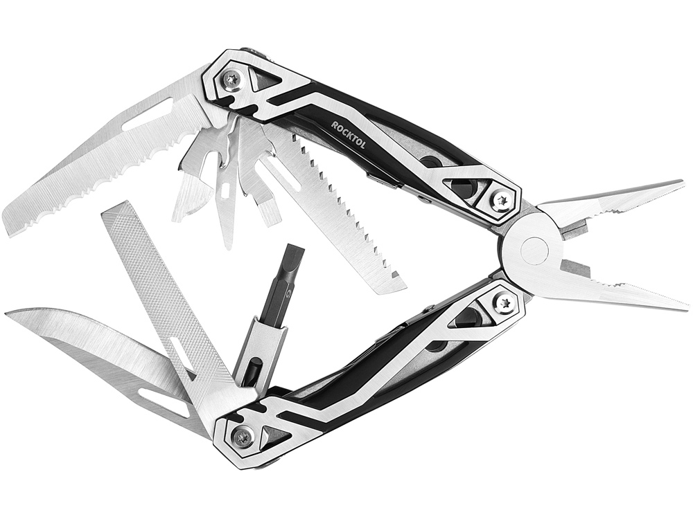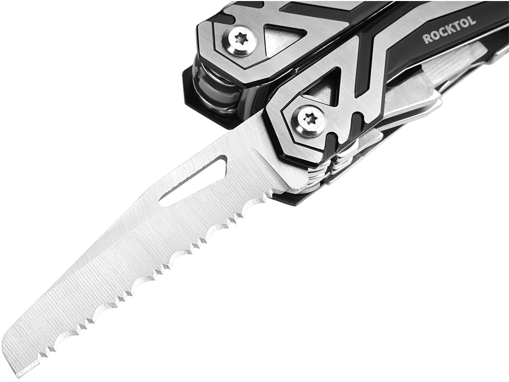 Мультитул Rocktol 21 в 1 с пружинными плоскогубцами. Плоскогубцы подпружинены и открываются автоматически. В комплект поставки входят нож с плоской кромкой и нож с зазубренной. Оба с лезвиями длиной 2,75 дюйма. Универсальный мультитул предлагает 21 функцию, включая плоскогубцы с игольчатым наконечником, обычные плоскогубцы, кусачки для проволоки, нож с плоской кромкой, магнитную отвертку с 8-функциональными насадками, линейку / напильник, зазубренный нож, открывалку для бутылок, консервный нож, шило, мини-отвертку с прорезями. Все функции оснащены предохранительной блокировкой. Мультитул Rocktol изготовлен из высококачественной нержавеющей стали 3Cr13 с термообработкой до твердости HRC56, прочный и долговечный. Рукоятка выполнена 3D-обработкой из черного оксида и высечкой под давлением с элегантной блестящей поверхностью антикоррозийного качества. В комплект входят нейлоновые ножны премиум-класса с петлей для ремня диаметром 2,2 дюйма для удобства переноски. Мультитул оснащен мощными сменными битами с магнитным механизмом. В комплект входят 4 обоюдоострых бита. Гнездо для долота имеет 2 фиксированных положения, прямоугольное и прямое, что позволяет адаптировать его к различным рабочим ситуациям. Этот надежный мультитул идеально подойдет всем, кто любит активный отдых, такой как кемпинг, пеший туризм, рыбалка, выживание, охота, ремонт гаража или проекты Сделай сам дома. Мультитул и ножны упакованы в качественную коробку, готовую к подарку.