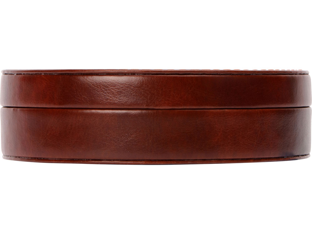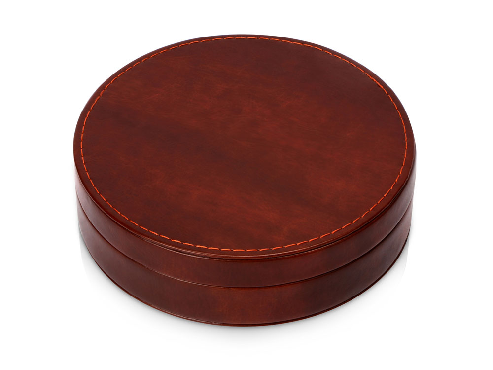 Набор винных аксессуаров состоит из воронки-аэратора, пробки, каплеуловителя и штопора. Металлические детали выполнены из нержавеющей стали, устойчивой к коррозии, также использованы силиконовая резина и АБС-пластик, абсолютно безопасный для человека. Винные принадлежности разложены в красивом круглом футляре на бархатистом вырубленном ложементе, где для каждого инструмента предусмотрено свое место. Снаружи набор обтянут искусственной кожей, точно такой же по текстуре и цвету, что и другие изделия серии Fabrizio, что позволяет составлять с ними гармоничные комплекты. - воронка-аэратор позволяет насытить вино кислородом, чтобы раскрыть вкус и аромат напитка - каплеуловитель защитит вас от винных подтеков - пробка с силиконовым уплотнителем сохранит вино свежим - нержавеющая сталь обеспечивает изделиям долгую жизнь - компактная коробка - легко собирать наборы с другими изделиями серии Fabrizio благодаря общему стилю