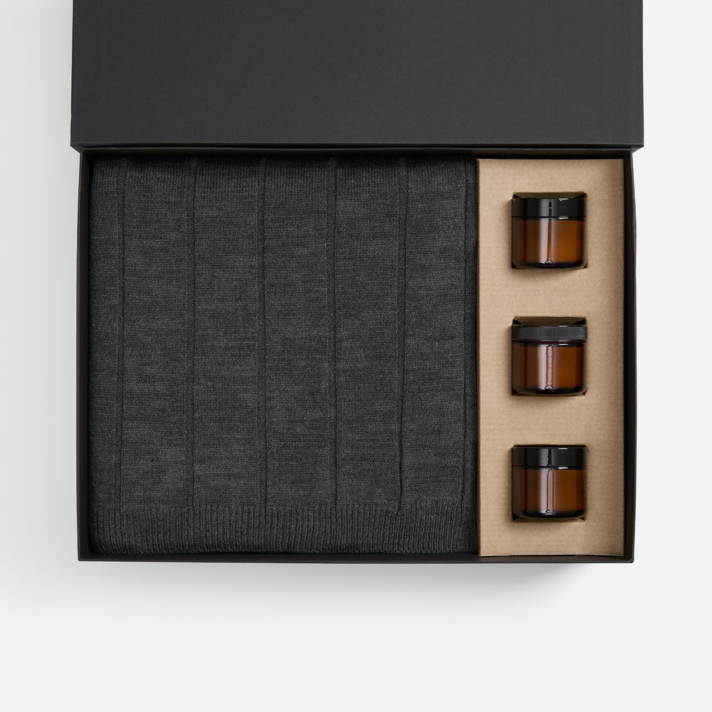 | Материал | плед - акрил 100%, плотность 310 г/м² ; подсвечник - стекло, крышка - пластик; свеча - парафин, соевый воск, парфюмерная композиция; коробка - переплетный картон, бумага Magic |