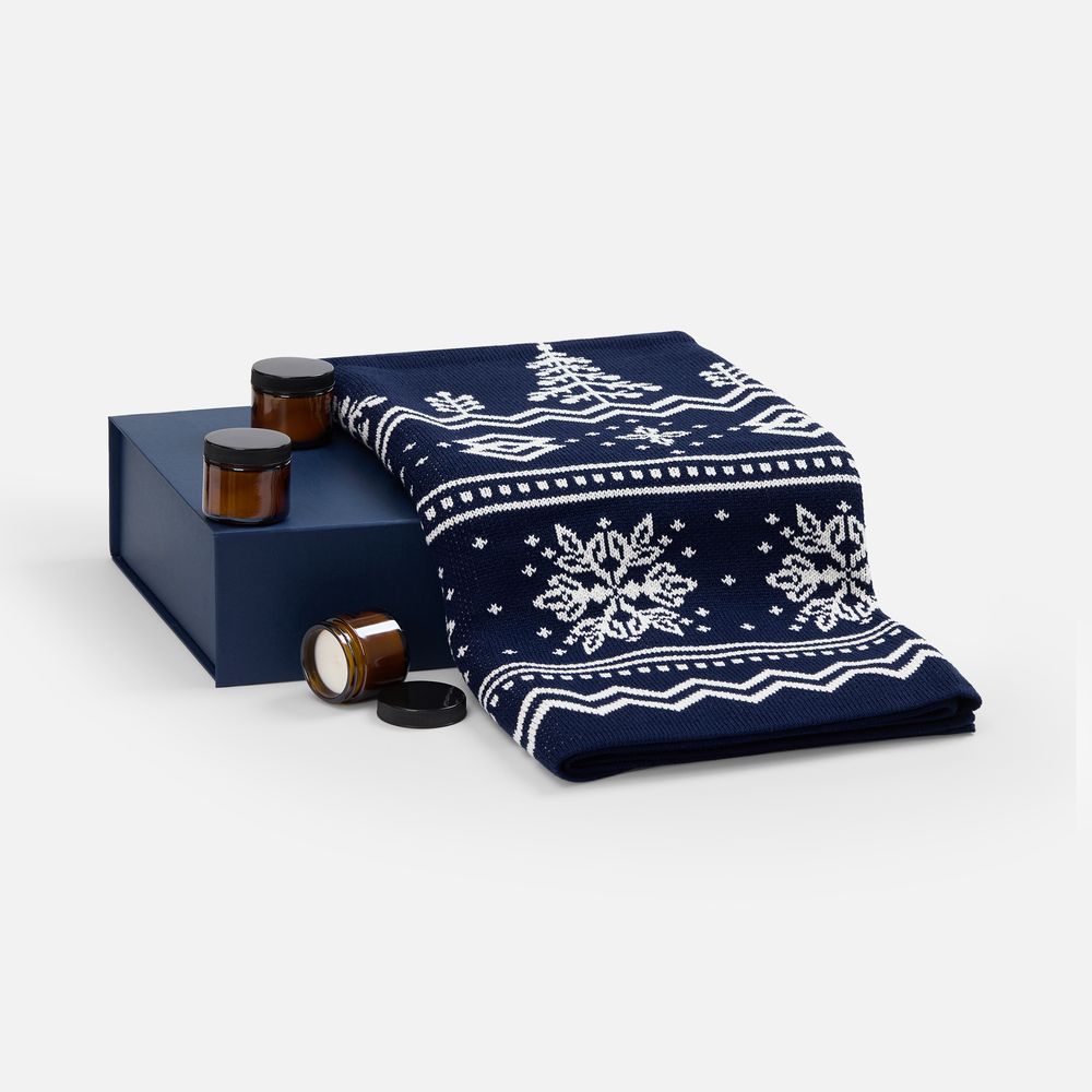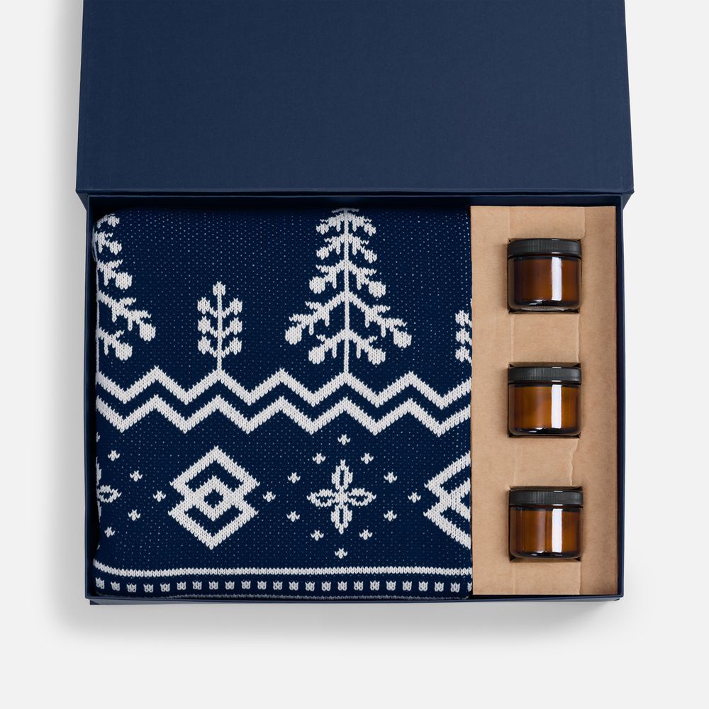 Идеальный зимний подарок для ваших партнёров и клиентов. Этот набор — дань уютным традициям и современному стилю. Мягкий плед с аутентичными зимними узорами и три изысканных аромасвечи дарят атмосферу тепла, праздника и беззаботности.