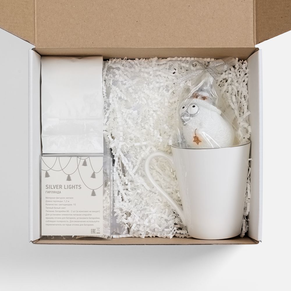 | Материал | кружка - костяной фарфор; гирлянда - пластик, металл; свеча - парафин; ежедневник - искусственная кожа; ручка - металл |