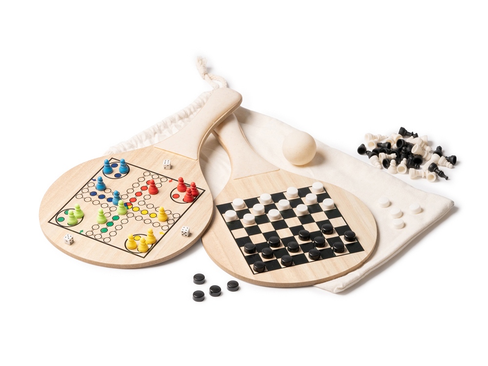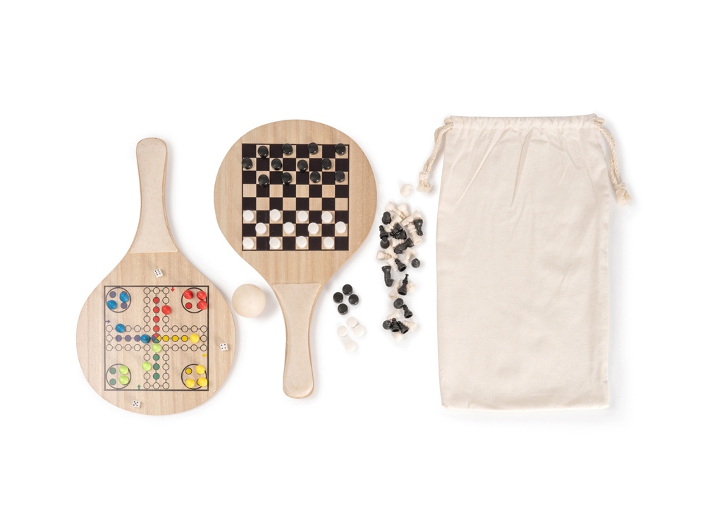 Набор пляжных ракеток из дерева и пшеничного волокна. Включает игры: шахматы и парчиси.