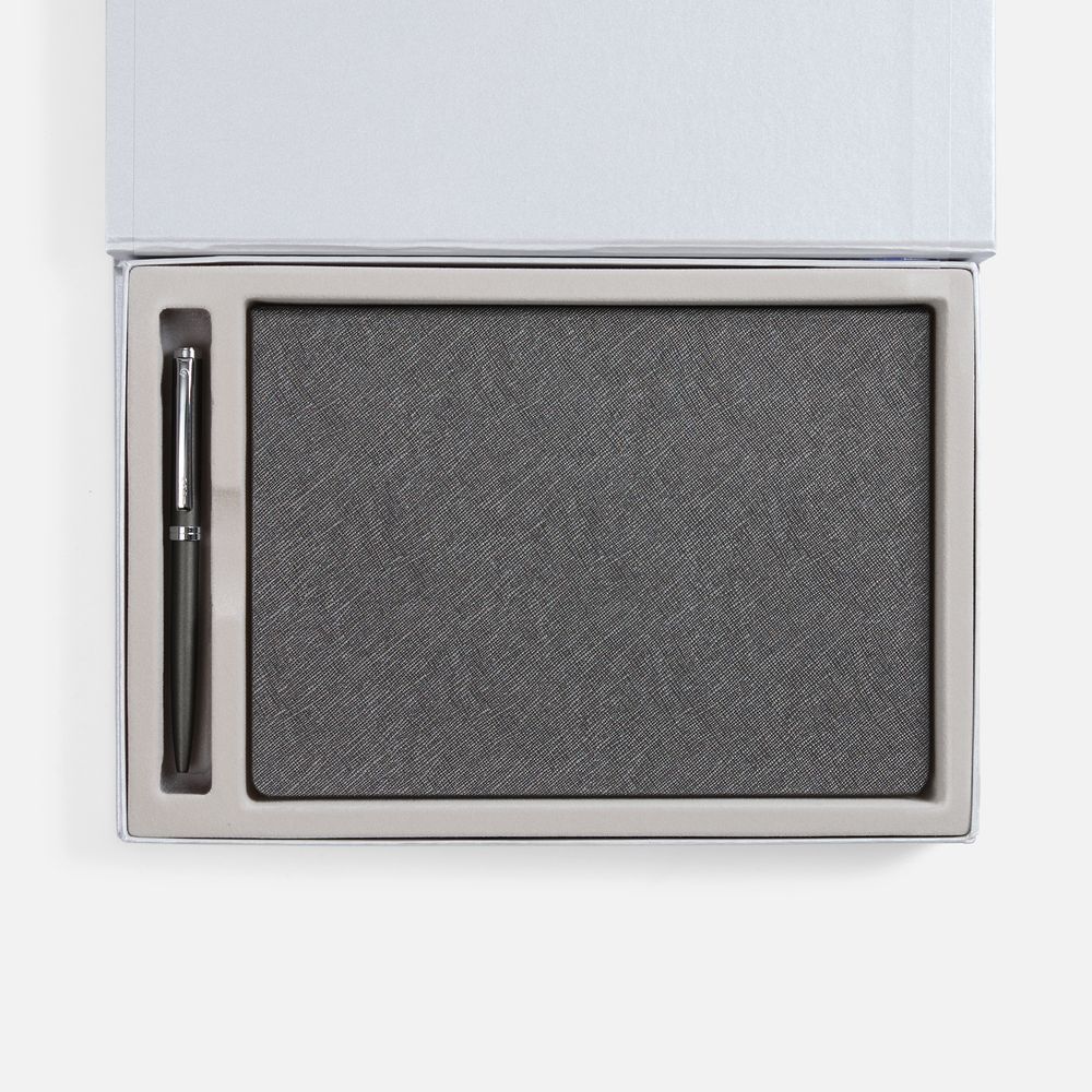 • Коробка Silk с ложементом под ежедневник 15х21 см и ручку, ver.2, серая