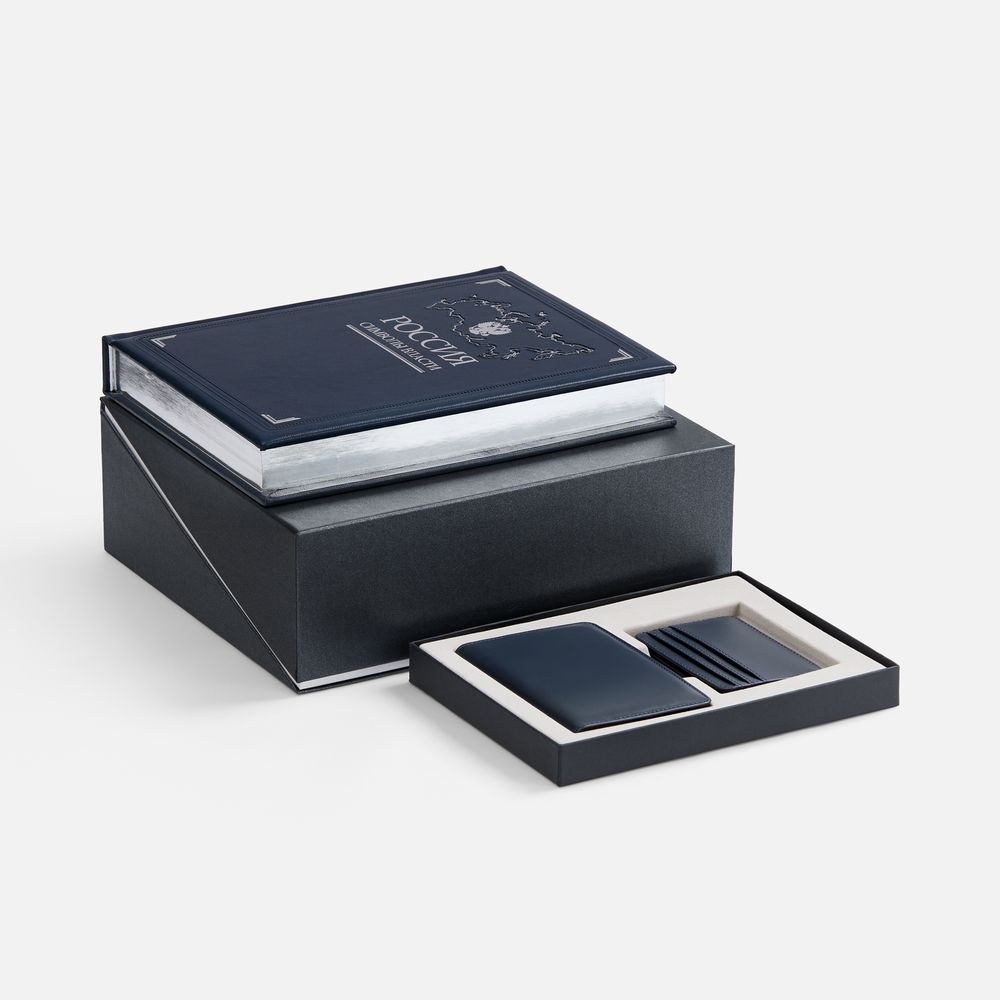 | Материал | книга, обложка на паспорт, чехол - натуральная кожа; коробки - переплетный картон, коробка Artikus - переплетный картон, бумага Majestic |