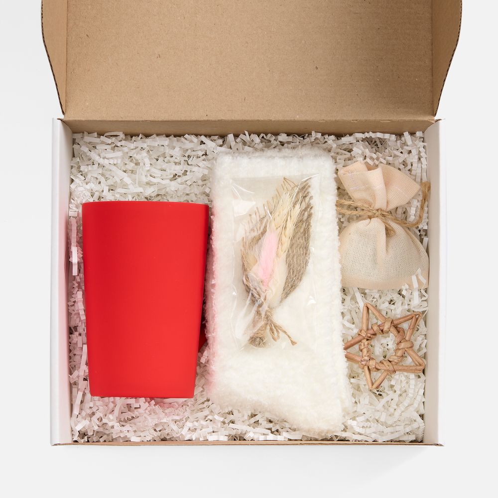 | Материал | кружка - фарфор; покрытие софт-тач; носки - полиэстер 100%; упаковка для набора - микрогофрокартон, лен, джут, бумага |