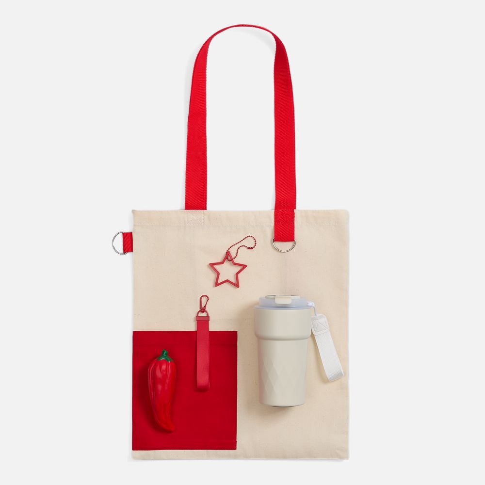 | Материал | термостакан - металл, пластик; шопер - хлопок 100%, плотность 240 г/м²; саржа; сквиши-антистресс - полиуретан; подвеска - пластик; ремувка - полиэстер 100%, металл; цепочка - металл |