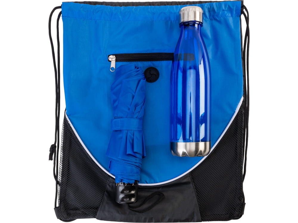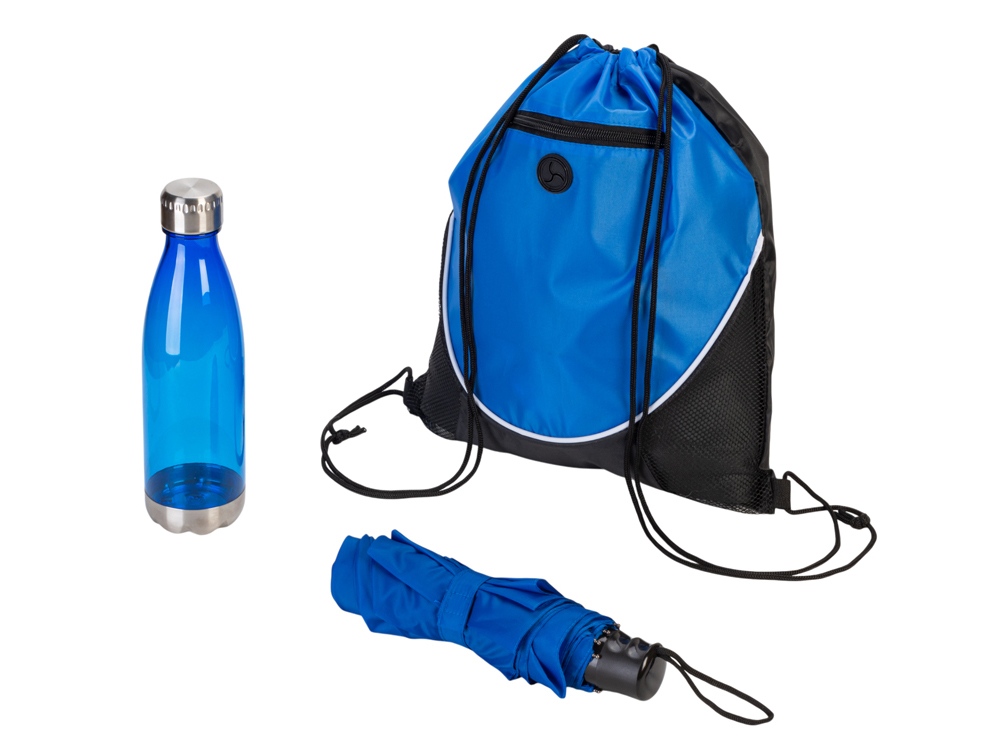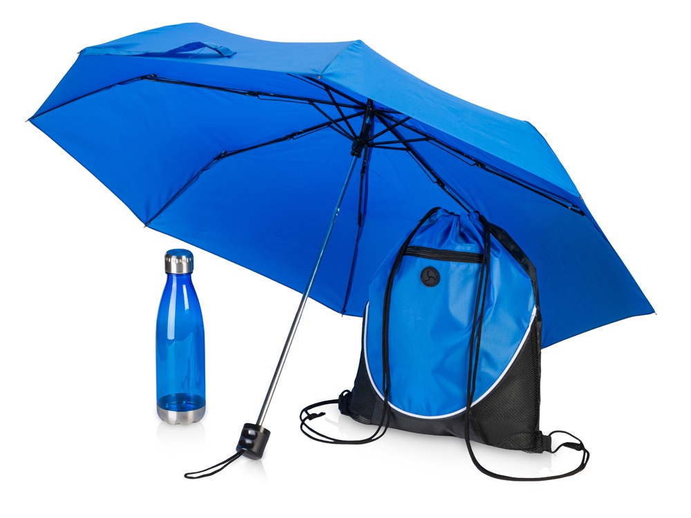 Практичный мерч для прогулок на любой сезон. Облегченный зонт с механической конструкцией изготовлен из полиэстера, стального каркаса, металлических спиц и пластиковой ручки. Идеально подойдет для людей, любящих комфорт во всем. Удобный рюкзак на верёвочных лямках с одним основным отделением, которое стягивается шнурком. Спереди расположен большой карман, закрывающийся на молнию. Бутылка для воды позволит брать с собой не только воду, но и спортивные тонизирующие напитки или коктейли и поможет освежиться в любой момент. Тритан, из которого изготовлена бутылка, не искажает вкус и запах напитков, являясь абсолютно безопасным для человека. - рюкзак оснащён портом для наушников; - индивидуальный чехол для зонта; - объём бутылки: 700 мл.