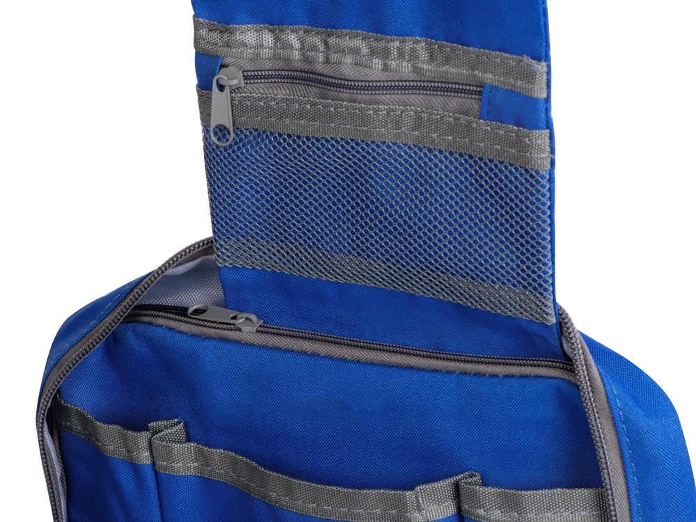 Несессер для путешествий – неотъемлемый атрибут комфортных поездок, служащий для компактного хранения различных мелочей. Аксессуар также пригодится для походов в спортзал и просто поддержания порядка дома. Это превосходный подарок любителю путешествий, а также отличный вариант промо-презента для рекламных кампаний. Большая поверхность позволяет нанести логотип или слоган фирмы. • Вместительное пространство с двумя большими отделениями и несколькими карманами дает возможность эргономично распределить весь дорожный арсенал косметических и туалетных принадлежностей. • Крючок позволяет подвесить аксессуар, например, в уборной поезда или гостиничном номере, в случае отсутствия полки. • Оптимальные размеры, не превышающие формат А4, позволяют легко разместить несессер в любом чемодане или дорожной сумке.