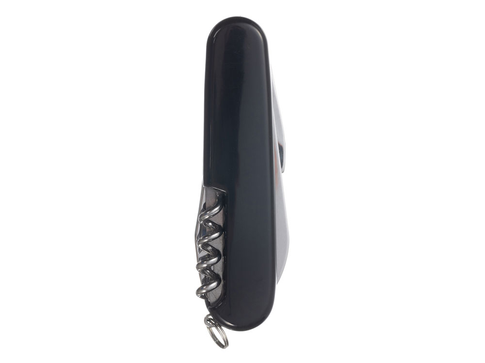 Нож перочинный STINGER имеет 10 функций: 1. Большое лезвие 2. Консервный нож с: 3. – Малой отвёрткой 4. Шило с: 5. – Иглой 6. Штопор 7. Открывалка для бутылок с: 8. – Отвёрткой 9. – Инструментом для снятия изоляции 10. Кольцо для ключей ХАРАКТЕРИСТИКИ Материалы: • лезвие/инструменты: нержавеющая сталь AISI 420, твердость 44-48 HRC • рукоять: нержавеющая сталь AISI 420, твердость 44-48 HRC • накладки рукояти: АБС-пластик Размер: 90 мм Вес: 63 г Цвет накладок рукояти: черный Накладки рукояти ножа не подлежат замене. Упаковка: картонная коробка