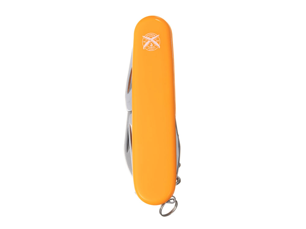Нож перочинный STINGER имеет 10 функций: 1. Большое лезвие 2. Консервный нож с: 3. – Малой отвёрткой 4. Шило с: 5. – Иглой 6. Штопор 7. Открывалка для бутылок с: 8. – Отвёрткой 9. – Инструментом для снятия изоляции 10. Кольцо для ключей ХАРАКТЕРИСТИКИ Материалы: • лезвие/инструменты: нержавеющая сталь AISI 420, твердость 44-48 HRC • рукоять: нержавеющая сталь AISI 420, твердость 44-48 HRC • накладки рукояти: АБС-пластик Размер: 90 мм Вес: 63 г Цвет накладок рукояти: оранжевый Накладки рукояти ножа не подлежат замене. Упаковка: картонная коробка