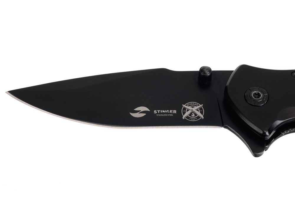 НОЖ СКЛАДНОЙ STINGER Повседневный нож из прочных материалов. Легкий и неприхотливый в обслуживании. Рукоять ножа произведена из нержавеющей стали, собрана на втулках - бонках, поэтому при необходимости нож можно легко промыть. Нож быстро открывается при помощи флиппера с ассистом (механизм ускоренного открывания). На рукояти расположено отверстие для темляка и клипса для удобного размещения ножа в кармане. Клинок ножа произведен из жаропрочной мартенситной стали 3Cr13. Преимуществом этой стали является отличное противодействие коррозии благодаря высокому содержанию хрома (13%). Оптимальное содержание легирующих элементов в составе сплава 3Cr13 придает ему хорошую твердость в диапазоне 52-55 HRC. Из-за низкого содержания углерода (0,3%) заточку лезвие из такой сталь держит средне, но легко затачивается даже после активной эксплуатации ножа. При этом дополнительных аксессуаров для заточки не требуется, достаточно простого точильного камня или мусата. Характеристики: Материал клинка: нержавеющая сталь 3CR13 Твердость по шкале Роквелла: 52-55 HRC Материал рукояти: нержавеющая сталь Метод открывания клинка: флиппер с ассистом (механизм ускоренного открывания) Фиксатор клинка: Liner Lock Длина ножа: 200 мм Длина клинка: 80 мм Толщина клинка: 3 мм Вес: 210 г. Цвет рукояти: серебристый/черный Особенности: рукоять с клипом и отверстием под темляк В комплекте: нейлоновый чехол