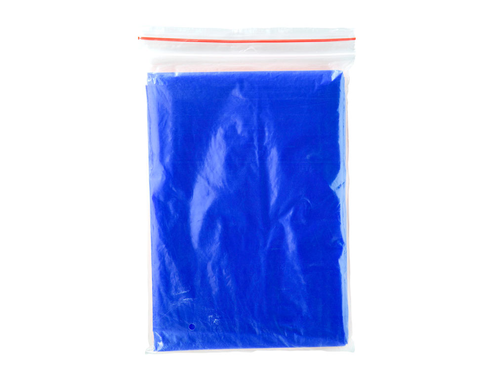 Одноразмерный прозрачный дождевик для взрослых с капюшоном и отверстиями для рук. Поставляется в мешочке из LDPE размером 10 x 13,5 см.