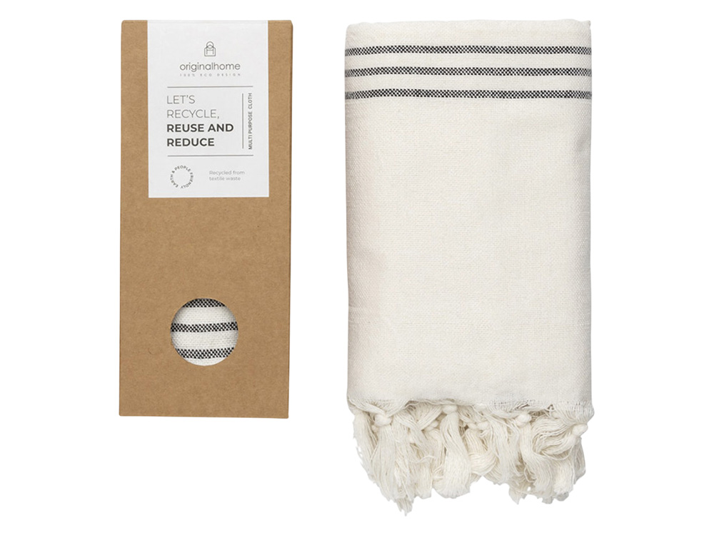 Этот универсальное изделие — достаточно плотное, чтобы использовать его как плед или полотенце, тонкое настолько, чтобы носить как шарф, и компактное, чтобы брать с собой куда угодно. Сделанное из 100% переработанных материалов текстильной отрасли в Бангладеше и сотканное на традиционной ручной ткацкой раме, оно способствует развитию женского предпринимательства. Идеальный социальный подарок, который вносит вклад как в устойчивое, так и в социально ответственное дело. Размер: 85 × 175 см. Состав: 70% переработанного хлопка, 25% переработанного полиэстера, 5% других переработанных волокон.