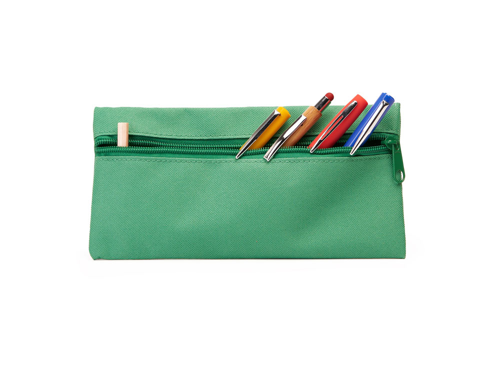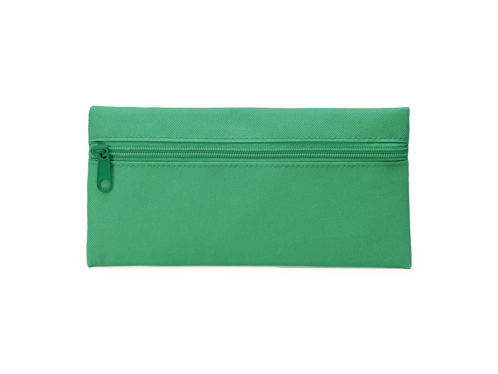 Однотонный пенал с металлической молнией в тон.