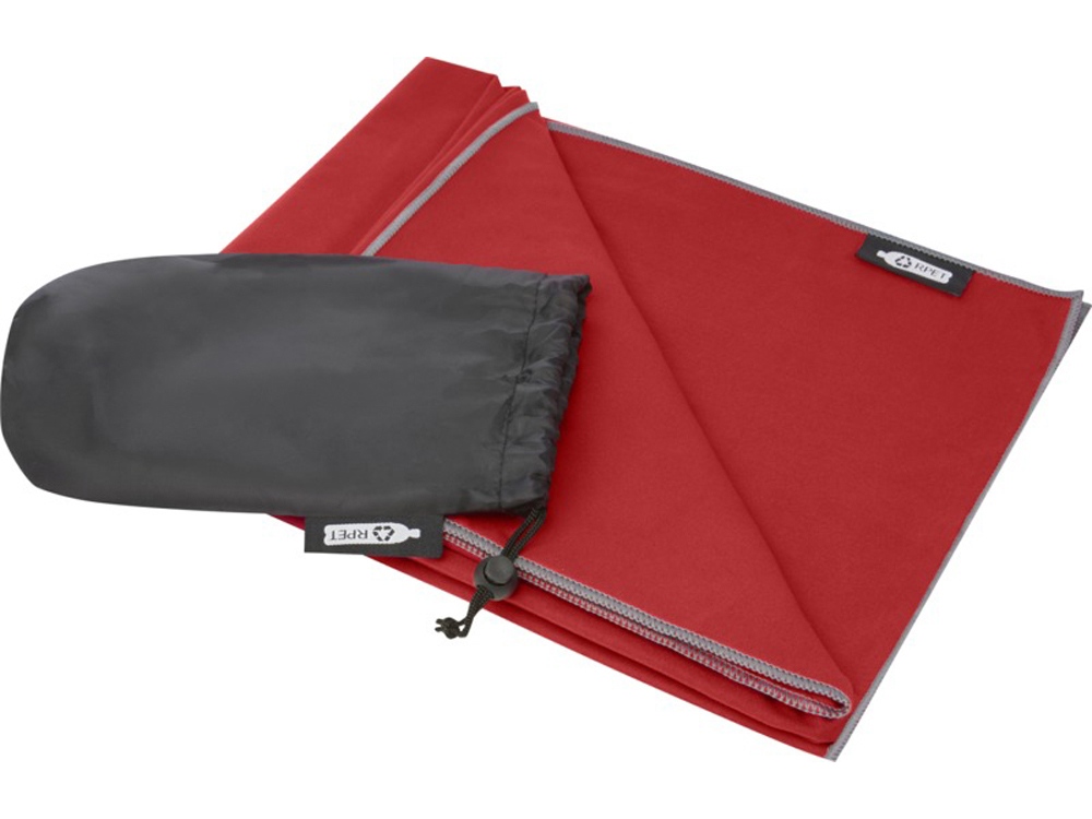 Это спортивное полотенце очень хорошо впитывает влагу, легкое, быстро сохнет. Кроме того, ткань прочная и чрезвычайно мягкая. Когда полотенце сложено и закреплено резинкой, оно уменьшается до небольшого размера, поэтому его удобно брать с собой в тренажерный зал, бассейн, на пешую прогулку или в поход. Полотенце имеет размер 130 x 80 см и изготовлено из переработанного РЕТ-полиамида плотностью 200 г/м2, его можно стирать в стиральной машине при 40 °C. Поставляется с сумкой для хранения (20 x 8,5 см) из переработанного РЕТ-пластика, на которой достаточно места для нанесения логотипа.