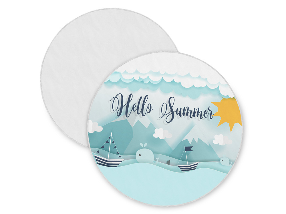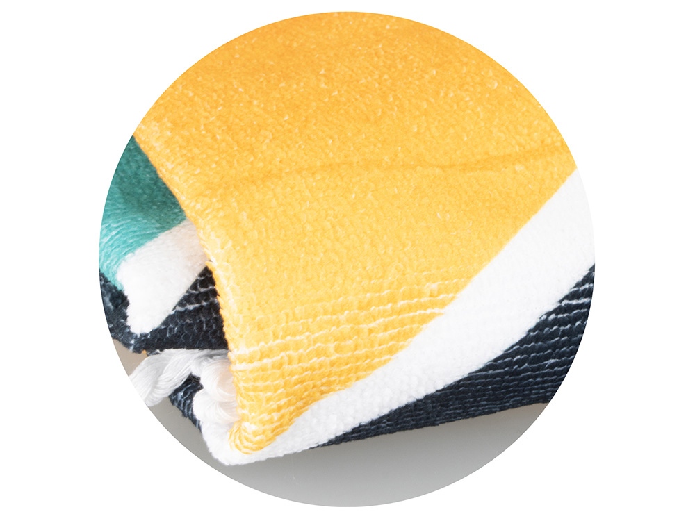 Необычный и трендовый вариант классического пляжного аксессуара. Круглая форма полотенца помогает быстро и удобно расстилать его на земле или шезлонге. Плотный полиэстер сохнет быстрее обычных тканей, поэтому полотенцу не требуется дополнительная упаковка после использования - достаточно ненадолго развесить его для просушки. Полноцветная печать на полотенце производится с помощью сублимации. Бахрома по краю может быть изготовлена в двух цветах (белый и чёрный) на выбор клиента. *Минимальное количество для заказа указано в таблице тиражности – цены становятся выгоднее с каждым новым порогом! *Поставка осуществляется только с нанесением, выполненным на производственных мощностях поставщиков в ЮВА по индивидуальному дизайну клиента. Опция без нанесения для данной позиции недоступна. Стоимость нанесения включена в цену товара. *Чтобы заказать сигнальный образец, добавьте 1шт в корзину и оформите заказ. Согласование сигнального образца доступно через менеджера, который отправит вам детальные фотографии со всех ракурсов при хорошем освещении, а также предоставит короткое видео, где можно рассмотреть детали нанесения и сам товар. *Товар поставляется под заказ по графику на сайте. Указанные даты являются ориентировочными и начинают отсчитываться с момента полного согласования макета и/или подтверждения сигнального образца, а также внесения предоплаты по заказу или запуску по кредитной линии.