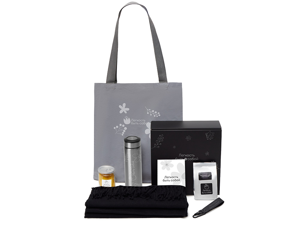Подарочный набор Re:f. Walk с палантином, шоппером и термосом, черный купить оптом и в розницу с нанесением логотипа в Волгограде