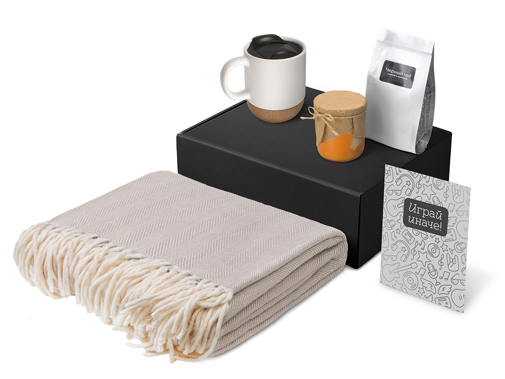 | Материал товара | плед - 100% хлопок, кружка - керамика, пробка, чай -пластик, мешок - нектаный материал (спанбонд), коробка -картон |