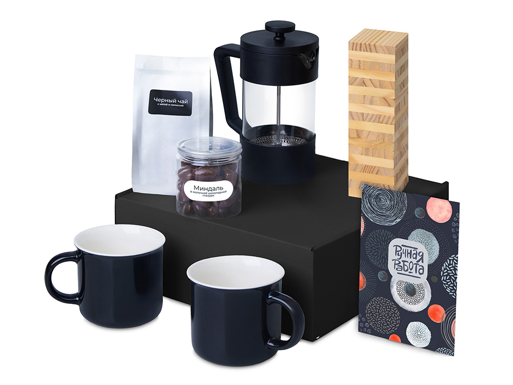 | Материал товара | кружка - костяной фарфор, френч-пресс - боросиликатное стекло, нержавеющая сталь, пластик, чай - пластик, игра - сосна, миндаль - пластик, мешок - нетканый материал (спанбонд), коробка - картон |
