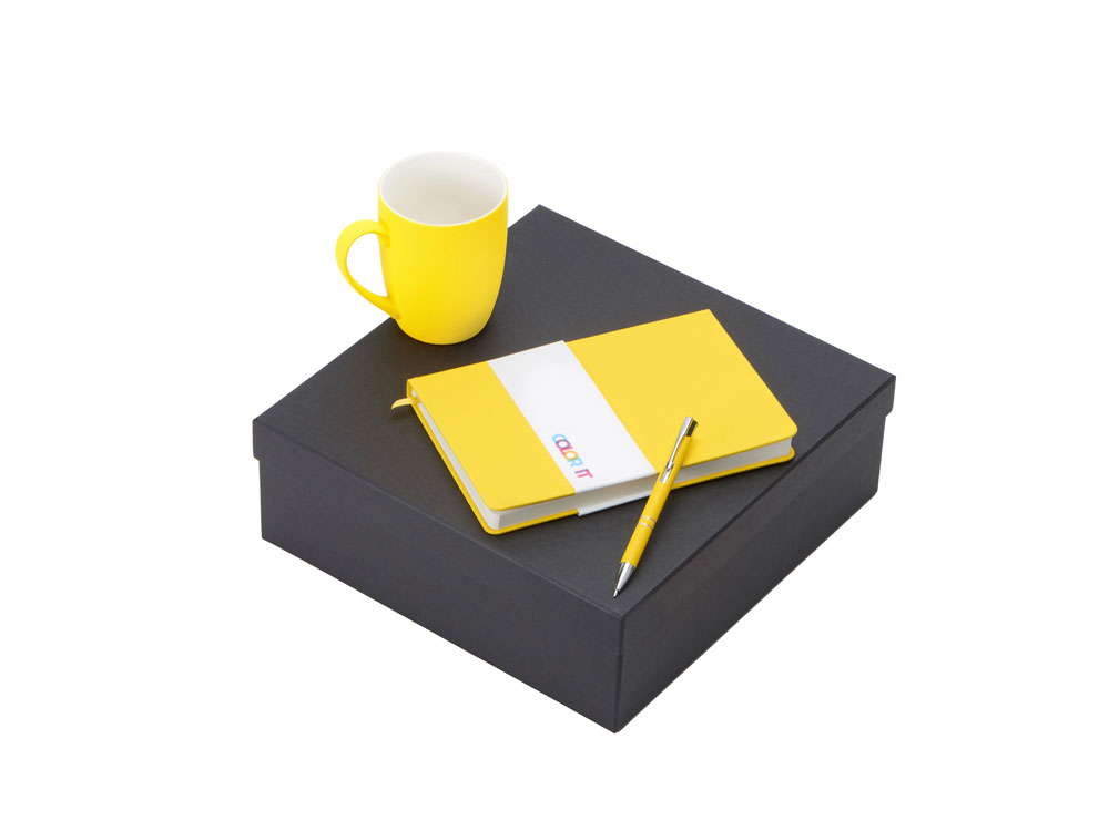 Color It — линейка, в которую входят хиты мерча в десяти самых популярных цветах. Еще никогда собрать сет под свой брендбук не было так просто. Широкая цветовая палитра серии позволяет создать идеальный набор в едином оттенке Pantone. Все товары имеют тактильно приятное покрытие софт-тач. Сет поставляется в коробке: мы продумали все, включая подарочную упаковку, за вас — осталось нанести лого! Фарфоровая кружка с удобной ручкой брендируется методом гравировки, поэтому нанесение будет долговечным и не сотрётся при мытье кружки. Бизнес-блокнот в твёрдой обложке имеет ляссе в тон обложки и среза. Бумажный блок разлинован в линейку и выполнен из бумаги, полученной из древесины из специальных восполняемых лесных ресурсов, имеет сертификат FSC. Шариковая ручка имеет сменный стержень, поэтому такой мерч прослужит дольше обычной одноразовой ручки, долго напоминая о вас клиентам. - объём кружки: 300 мл; - блокнот А5 128 листов; - ручка с необычным слайдером; - подарочная упаковка из картона, оклеенного дизайнерской бумагой уже включена в набор