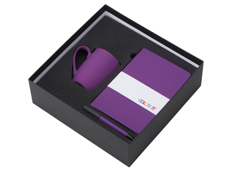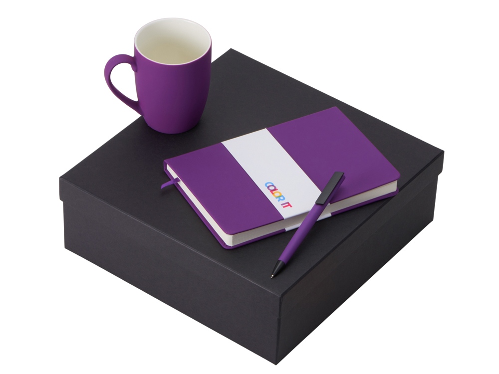 Color It — линейка, в которую входят хиты мерча в десяти самых популярных цветах. Еще никогда собрать сет под свой брендбук не было так просто. Широкая цветовая палитра серии позволяет создать идеальный набор в едином оттенке Pantone. Все товары имеют тактильно приятное покрытие софт-тач. Сет поставляется в коробке: мы продумали все, включая подарочную упаковку, за вас — осталось нанести лого! Фарфоровая кружка с удобной ручкой брендируется методом гравировки, поэтому нанесение будет долговечным и не сотрётся при мытье кружки. Бизнес-блокнот в твёрдой обложке имеет ляссе в тон обложки и среза. Бумажный блок разлинован в линейку и выполнен из бумаги, полученной из древесины из специальных восполняемых лесных ресурсов, имеет сертификат FSC. Тонкое письмо ручки обеспечивается пишущим узлом с толщиной письма 0,5 мм с нажимным механизмом. Ручка имеет сменный стержень, поэтому такой мерч прослужит дольше обычной одноразовой ручки, долго напоминая о вас клиентам. - объём кружки: 360 мл; - блокнот А5 128 листов; - ручка с необычным слайдером; - подарочная упаковка из картона, оклеенного дизайнерской бумагой уже включена в набор