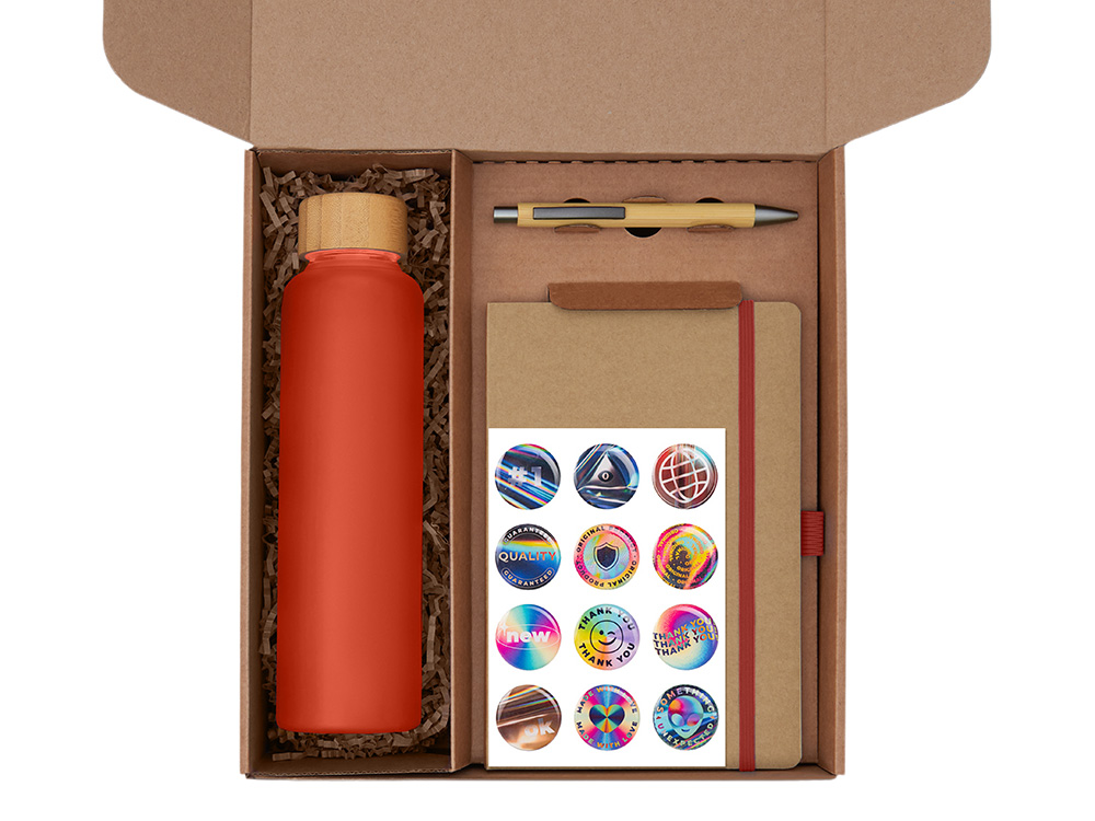 Набор Wooden станет отличным подарком для сотрудников, клиентов и партнёров, подчеркнёт внимание к их комфорту и заботу о деталях. Он уместен как корпоративный подарок на праздники, юбилеи и деловые мероприятия, так и в качестве welcome-набора для новых коллег. Набор объединяет всё необходимое для комфортного рабочего дня:  Блокнот для идей, заметок и планов на день; Ручка, которая всегда под рукой; Стеклянная бутылка для воды объемом 600 мл., чтобы поддерживать водный баланс в течение дня; Бамбуковая подставка для телефона, чтобы держать гаджет в поле зрения во время работы или видеозвонков;  Набор стикеров — для ярких акцентов и персонализации вещей Универсальный ложемент обеспечивает аккуратное размещение и надёжную фиксацию элементов, делая набор эффектным и презентабельным при вручении. Дополнительное преимущество — набор доступен в конструкторе наборов: компоненты можно заменить и собрать индивидуальный вариант под стиль компании или вкусы получателя.