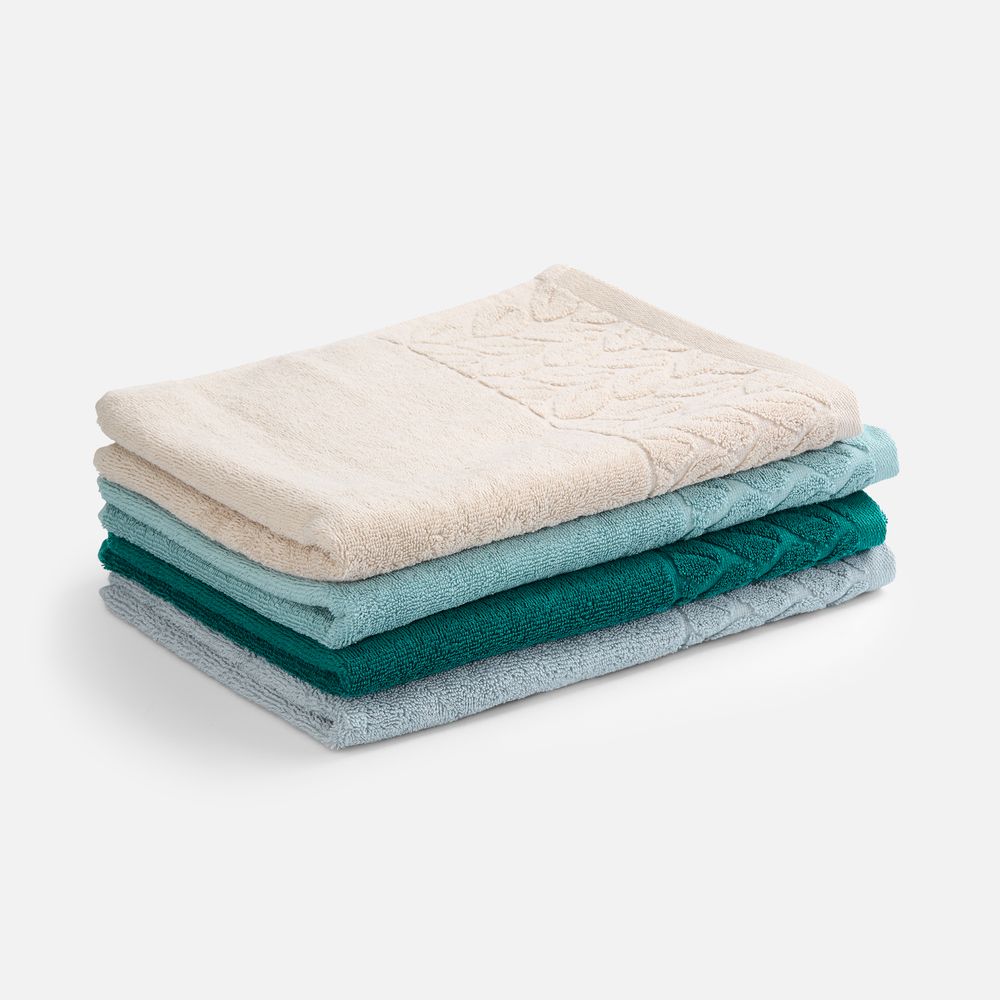 Светлые оттенки в сочетании с широким бордюром с рельефным растительным узором делают полотенце не только функциональным, но и эстетически привлекательным и элегантным.