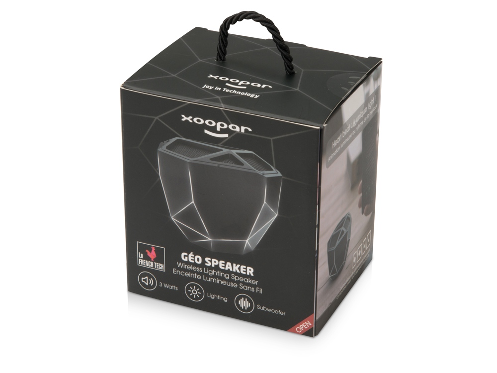 Беспроводная портативная колонка Geo с функцией расширенных басов изготовлена в дизайнерском стиле low-poly. Форма революционного Bluetooth-динамика напоминает мистический кристалл, а подсветка различных цветов (белая, синяя, красная, зеленая, оранжевая) добавляет таинственности. При этом ее яркость зависит от воспроизводимой музыки. Подсветку можно легко поменять, сделав три быстрых нажатия на кнопку включения и произойдет настоящая магия у вас в руках. Динамик соединяется с любыми устройствами, поддерживающими передачу данных по Bluetooth, поэтому подходит для большинства смартфонов и планшетов, например, iPhone, iPad. Версия Bluetooth - 4.2. Колонка имеет литий-полимерную батарею (450 mAh), которая эффективно сохраняет заряд, а также безопасна в использовании. Благодаря ей беспроводной динамик Geo” может работать до 4 часов без подзарядки, а на среднем уровне воспроизведения звука до 7 часов. Динамик настолько компактный, что помещается на ладони и весит всего 97 г. Он также имеет покрытие софт-тач, поэтому, если вы возьмете колонку в руки, то не захотите ее выпускать. На корпус колонки можно нанести гравировку, которая будет вскрываться при помощи подсветки. Идеальный презент не только для меломанов, но также для людей, которые любят инновационные умные” гаджеты. Беспроводная колонка Geo отлично дополняет серию электронных подарков от Xoopar - мышь Geo Mouse” и портативное зарядное устройство Geo Slim”.