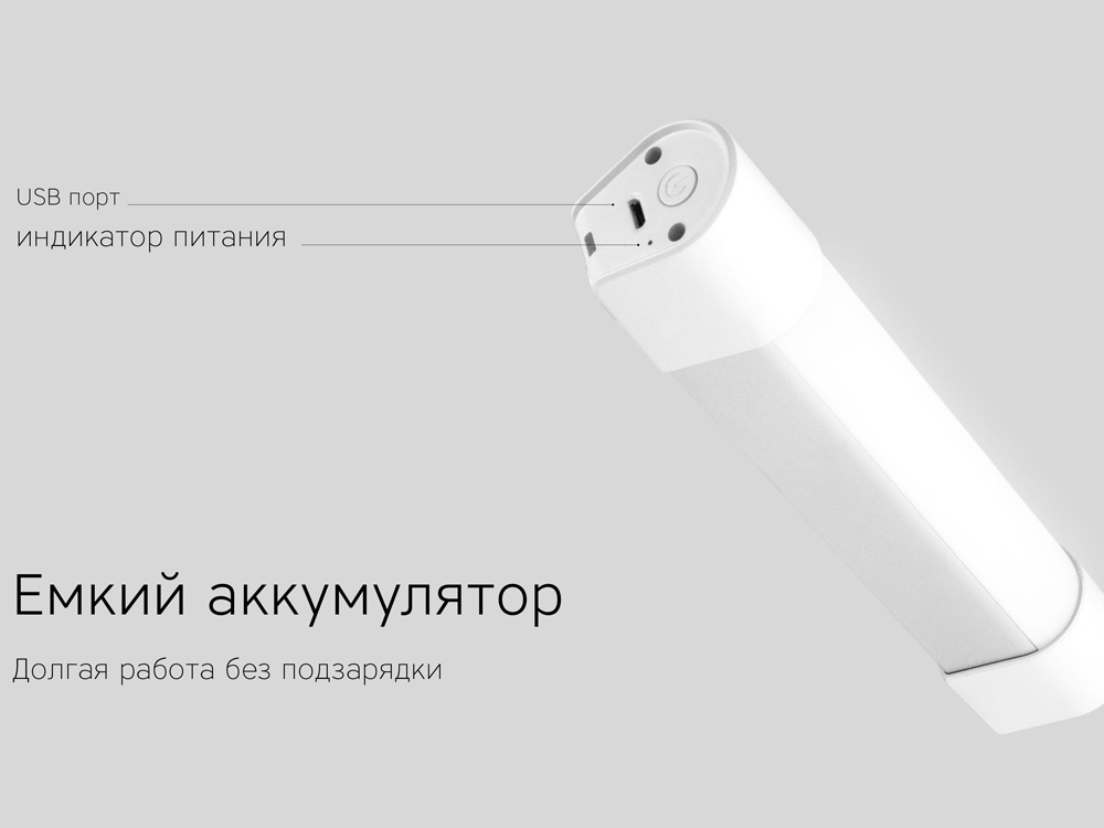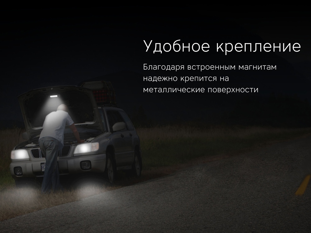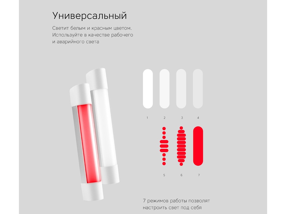 • Металлический корпус • Встроенная батарея • Зарядка по USB • Различные режимы работы • Белые и красный свет • Магнитное крепление