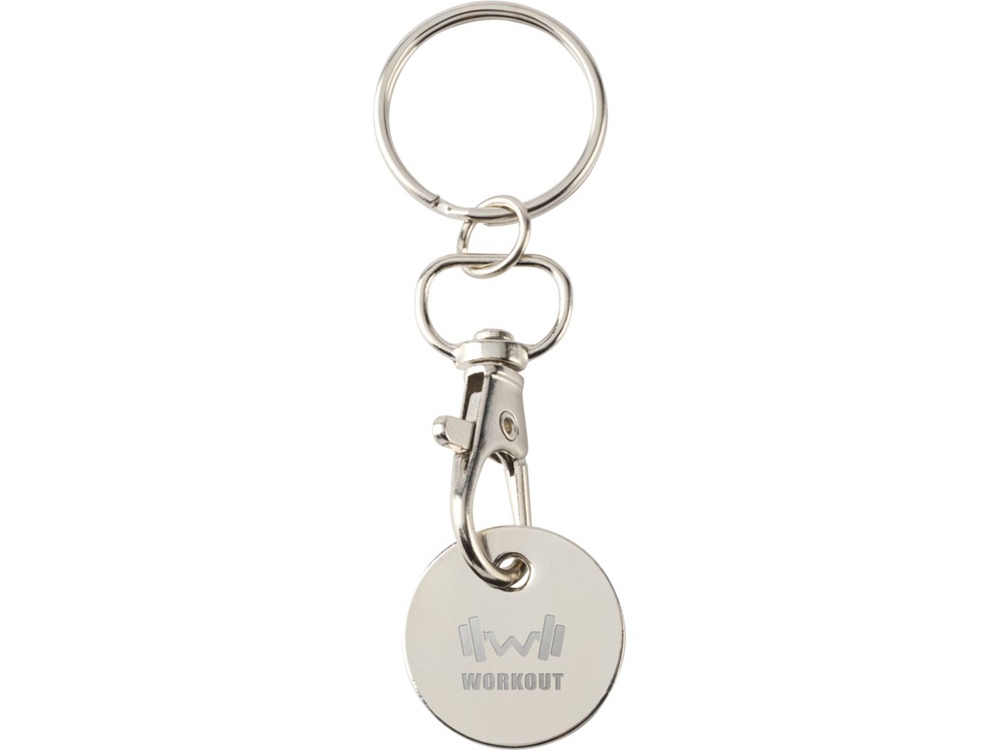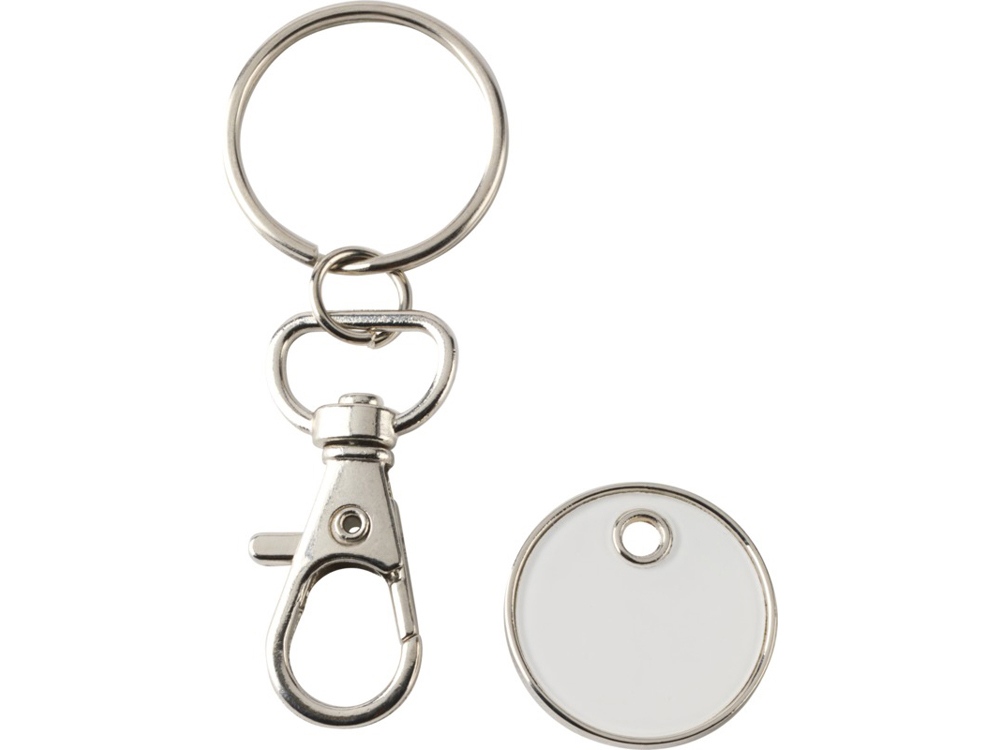 Брелок Rory с цветной монетой для тележки подходит для большинства тележек супермаркетов, позволяя открывать их без монет или жетонов. Цинковый сплав.