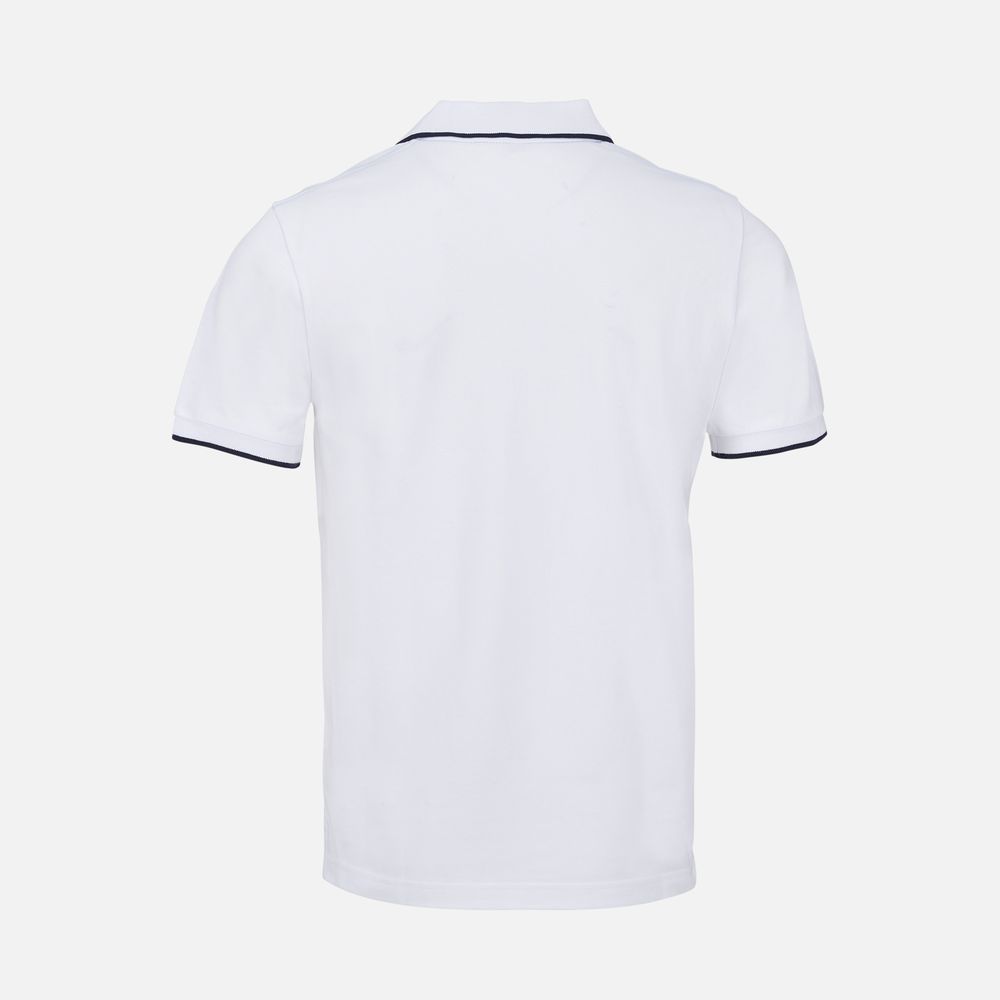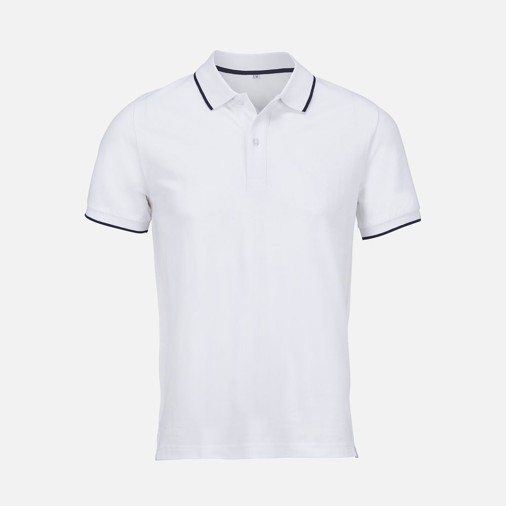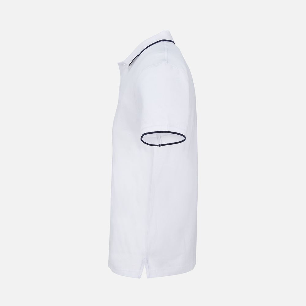 Рубашка поло унисекс Palermo, белая с темно-синим купить оптом и в розницу с нанесением логотипа в Волгограде