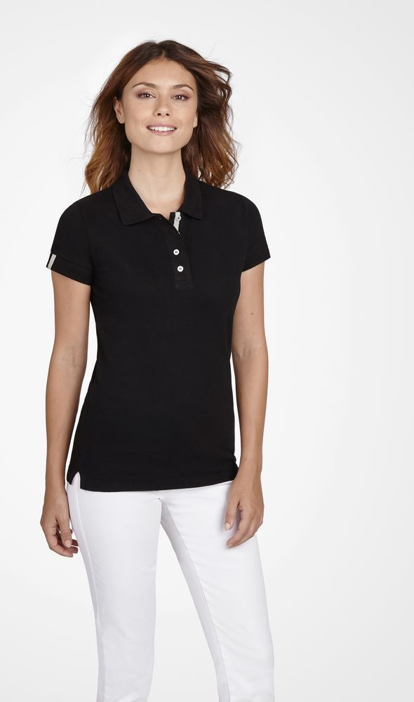 Рубашка поло женская Portland Women 200 черная купить оптом и в розницу с нанесением логотипа в Волгограде