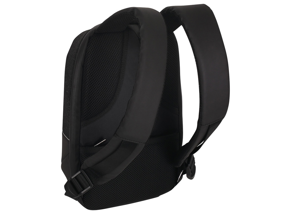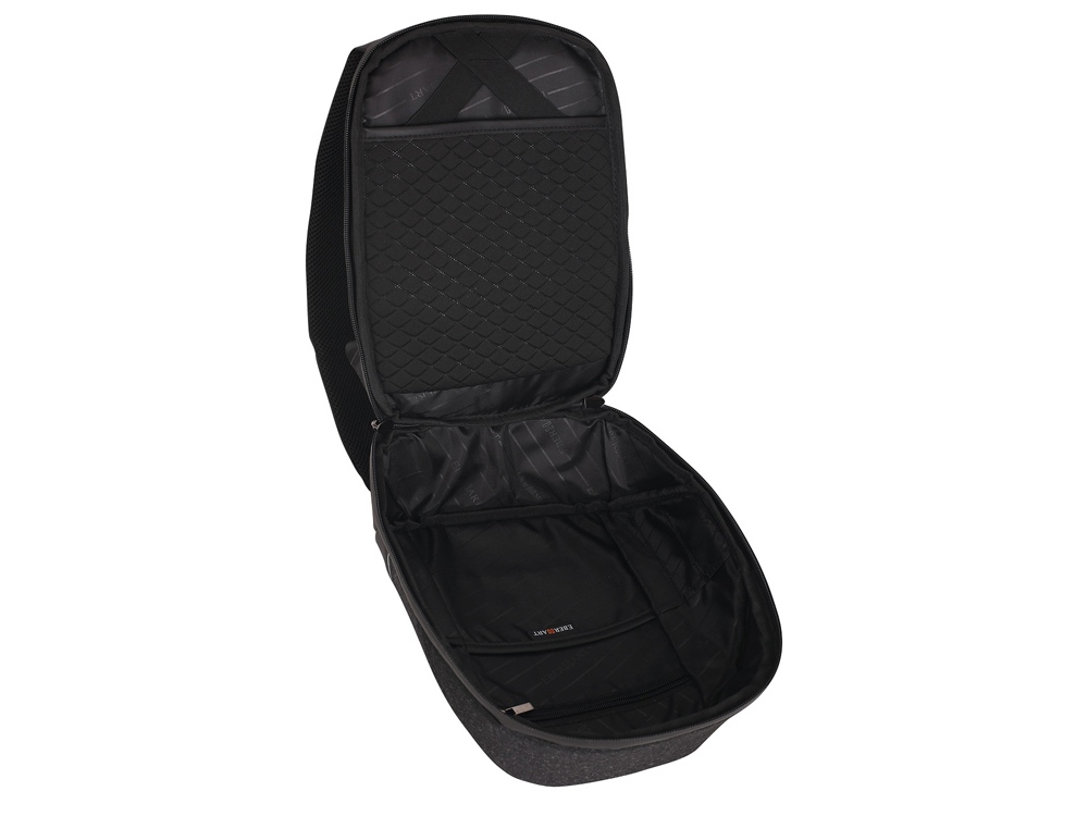 Небольшой городской рюкзак Eberhart Legacy – это аксессуар, в котором каждый элемент дизайна вызывает только восхищение. Жесткая форма, сглаженные углы и сочетание различных фактур позволили получить по-настоящему стильный аксессуар. Модель смело можно считать универсальной, что непременно оценят и спортивные парни, и утонченные девушки. Рюкзак выполнен из прочного полиэстера чистого черного цвета и черного с мелкими белыми вкраплениями. Граница между ними обозначена белой линией, что вносит определенный акцент и разбавляет строгость дизайна. Рюкзак имеет ручку для переноски и два широких утолщенных плечевых ремня, которые регулируются по длине. Спинка рюкзака ортопедическая, что делает процесс его ношения максимально комфортным и безопасным для здоровья. Одно большое отделение закрывается на двустороннюю молнию. Внутри есть карман на молнии и несколько небольших открытых отделении для хранения мелких предметов. На задней стороне рюкзака есть небольшой карман для хранения ценных вещей, которым требуется дополнительная защита.