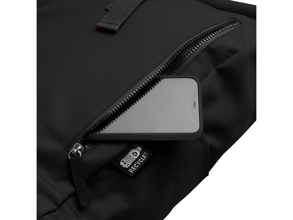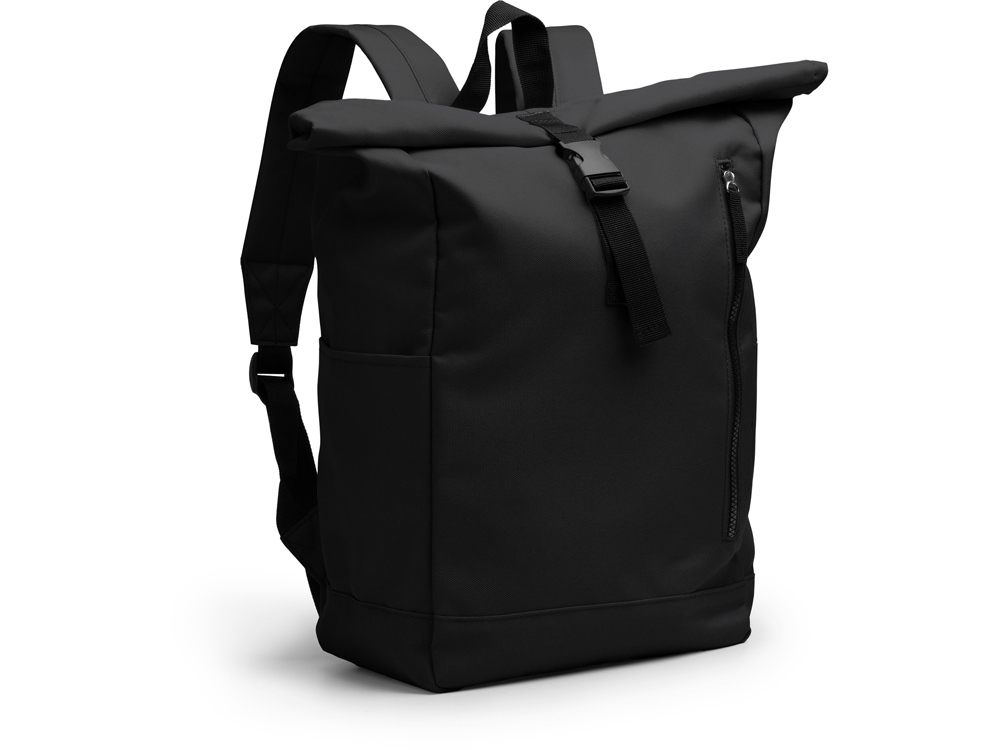 Рюкзак из полиэстера RPET. Основное вместительное отделение с широким отверстием. Внешний карман на молнии и два боковых кармана. Мягкие сетчатые плечевые ремни и спинка.
