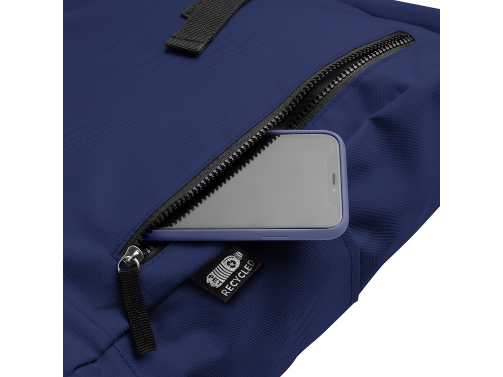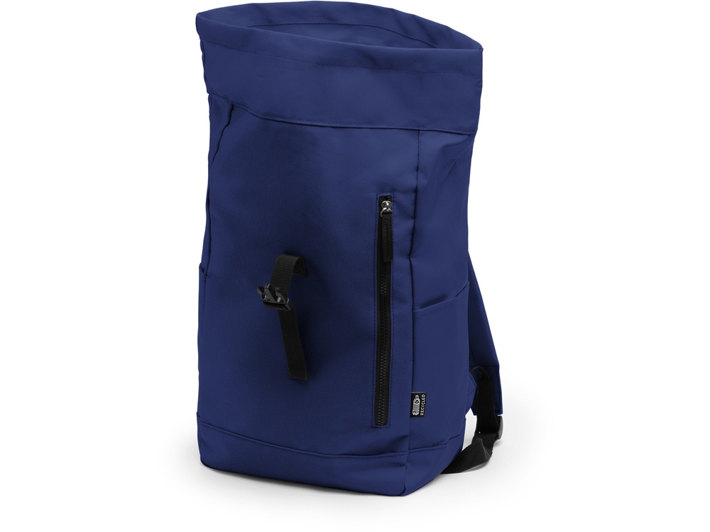 Рюкзак из полиэстера RPET. Основное вместительное отделение с широким отверстием. Внешний карман на молнии и два боковых кармана. Мягкие сетчатые плечевые ремни и спинка.