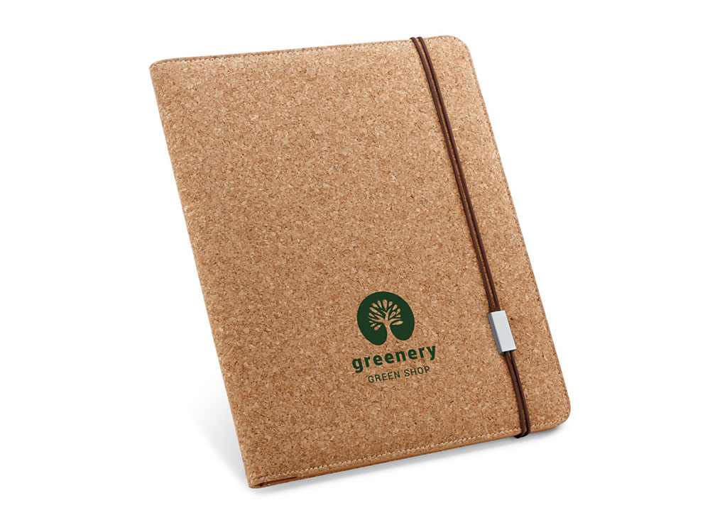 Папка A4 из натуральной пробки, с блокнотом из 20 чистых листов слоновой кости, держателем для шариковой ручки (ручка не входит в комплект) и резинкой. Поставляется в нетканом чехле. 239 x 307 x 17 мм | Сумка: 285 x 350 мм. Вид нанесения, рекомендуемый поставщиком: трансфер, гравировка, трафаретная печать.