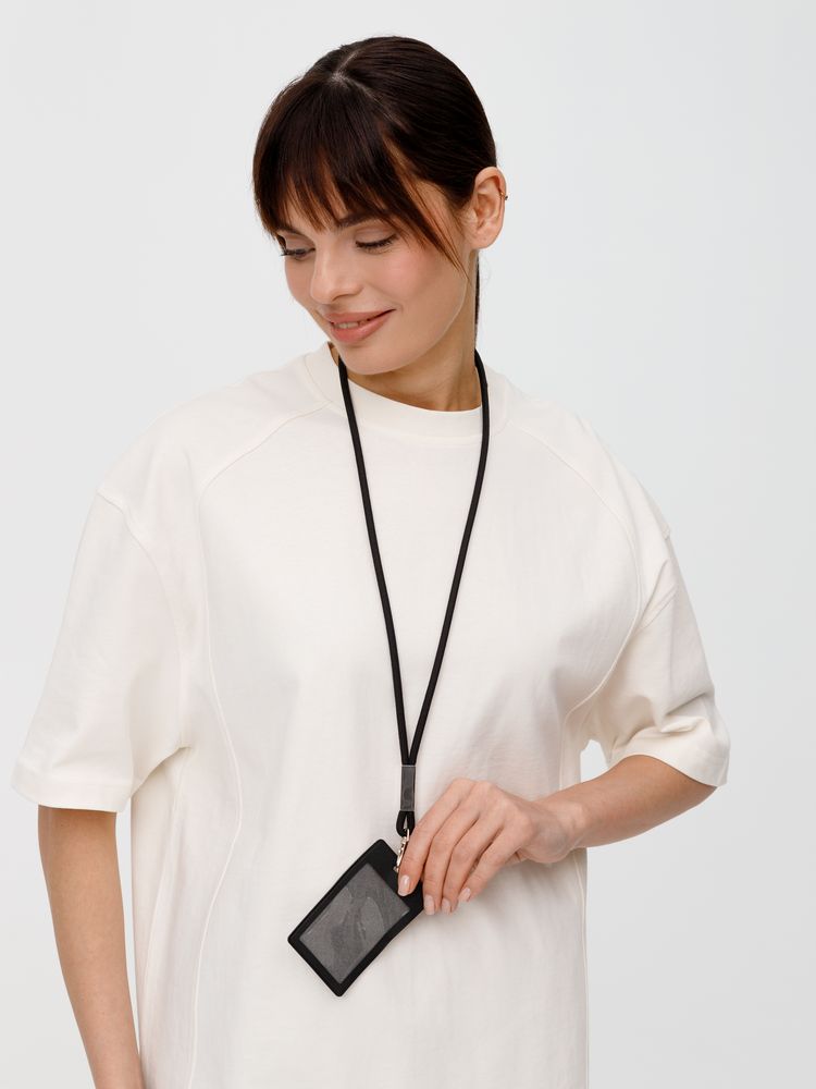 Шнурок для бейджа Tube Metal, черный купить оптом и в розницу с нанесением логотипа в Волгограде