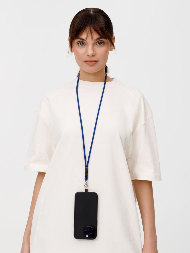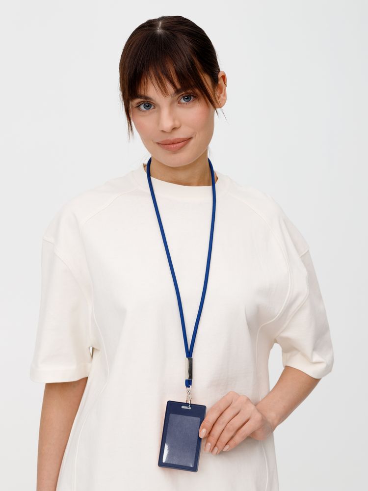 Шнурок для бейджа Tube Metal, синий купить оптом и в розницу с нанесением логотипа в Волгограде
